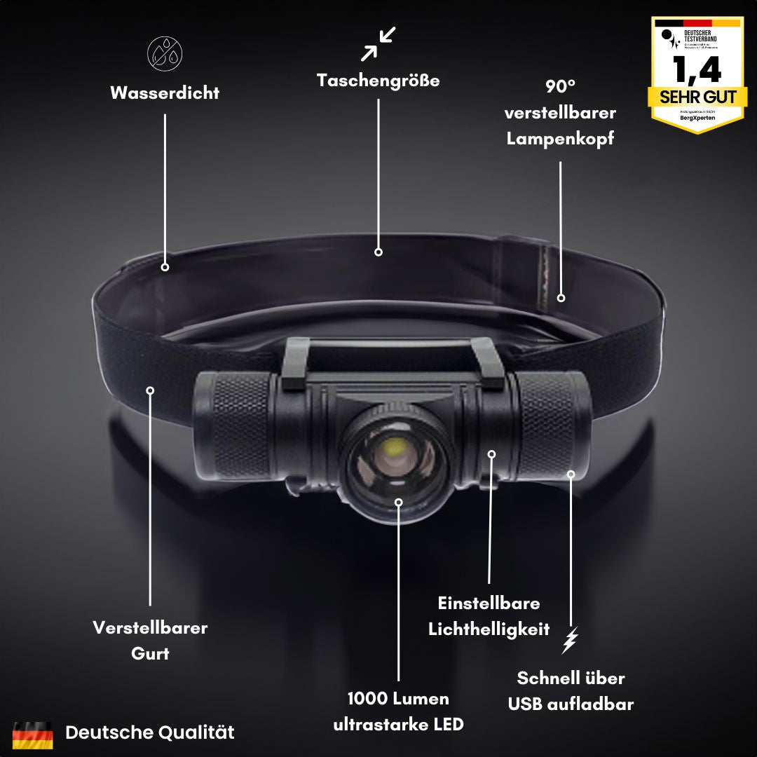 ✅ Bis zu 1000 Lumen Leuchtkraft, perfekt für tiefste Dunkelheit und anspruchsvolle Bedingungen