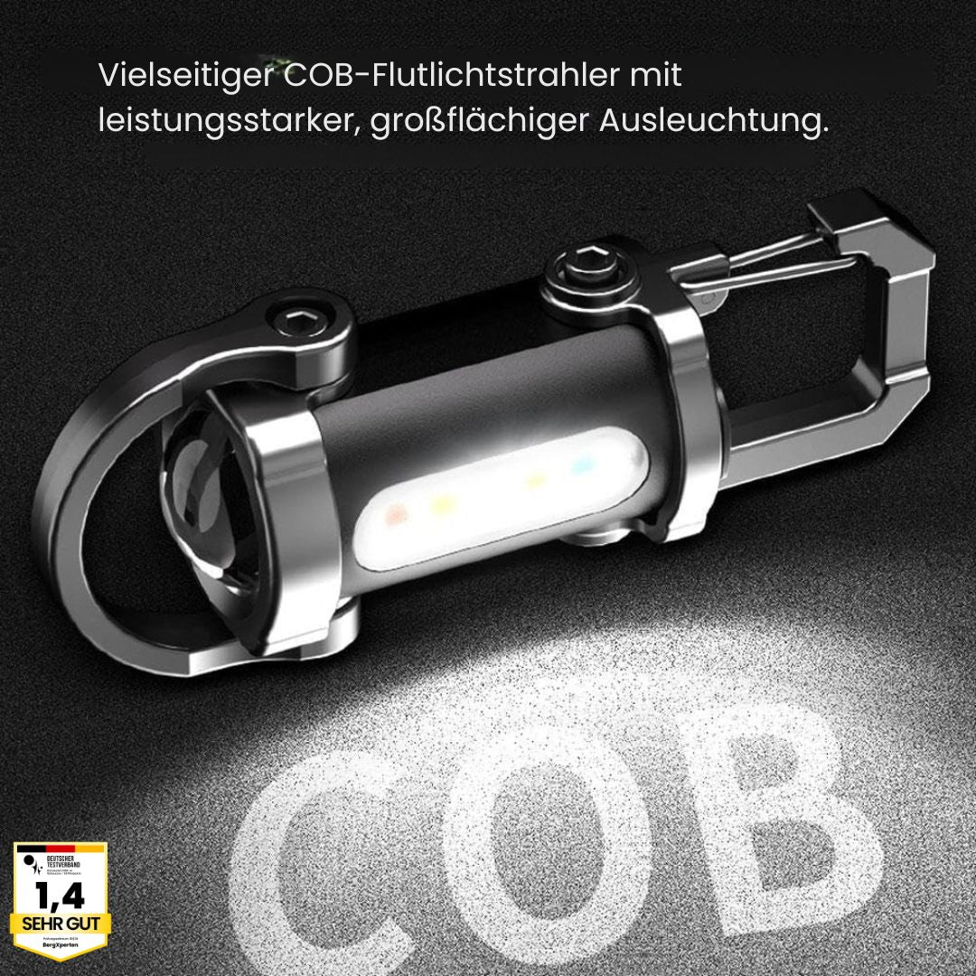 Die Mini-Power Taschenlampe vereint Helligkeit, Funktionalität und Komfort in einem eleganten Schlüsselanhängerformat.